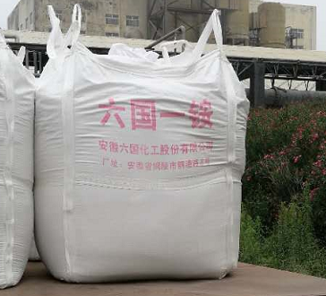 3、印刷字样:吨袋前后写上”六国一铵”四个大字,下面写上厂址,字体颜色为红色字体。