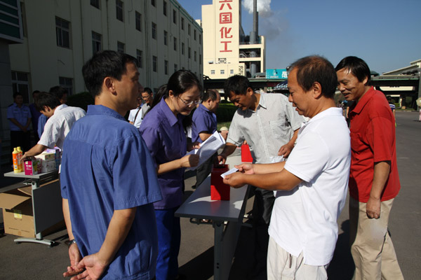 图为9月18日,六国化工公司质量知识有奖竞答活动现场。