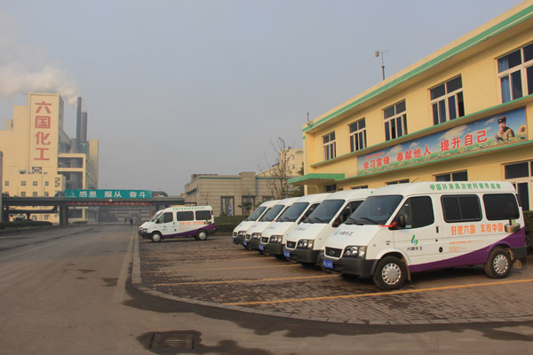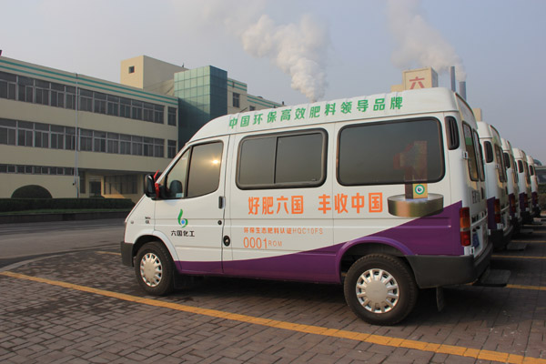 图为六国化工公司新购的8辆农化服务广告宣传车即将开赴市场一线。该公司强化塑造农化服务品牌和市场影响力,系统构建农化服务网络,并通过农化服务工作推动市场和销售。