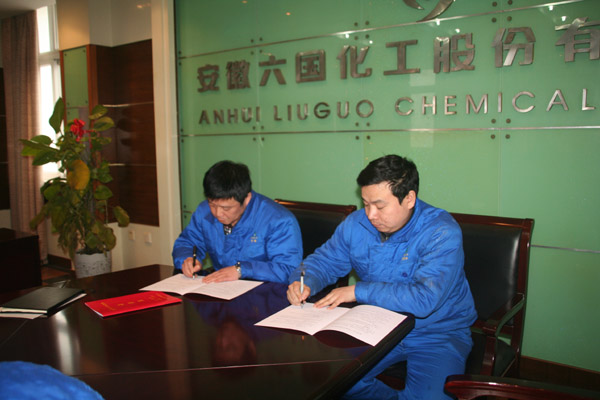 为强化安全生产目标管理,落实安全生产责任制,有效控制和减少各类事故发生,确保公司安全控制指标计划的实现。2月13日,六国化工公司与氮肥厂等生产车间、设备动力部等生产专业部门及8个外协劳务公司负责人签订《安全生产目标管理责任书》。《责任书》中明确了各用工单位安全生产考核指标及工作责任。该公司将按《六国公司经济责任制考核办法》及有关文件规定执行考核奖罚。