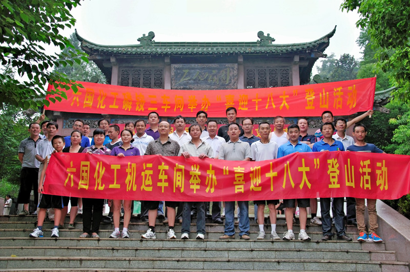 为进一步增强员工的健康意识,丰富员工体育文化生活。日前,六国化工公司机运车间、磷铵三车间在市笔架山公园,联合开展“励志奋斗,迎接十八大”主题登山活动。两车间50多名职工踊跃报名参加,最终产生男子组前五名,女子组前三名。图为参加活动人员合影留念。