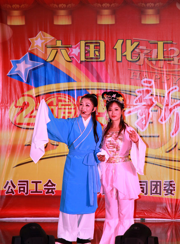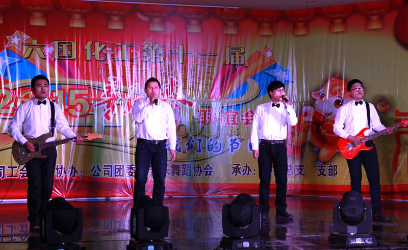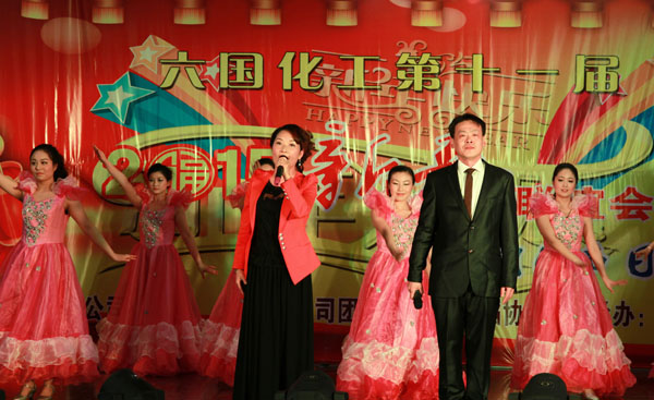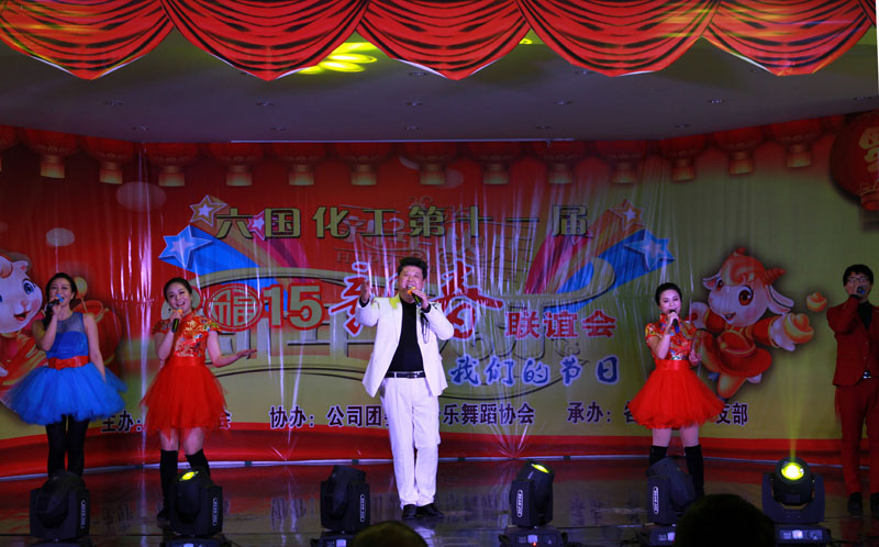 2月12日下午,球盟会网页登录平台小礼堂内欢乐爆棚:台上的员工演员们用歌声表达祝福,舞姿展现风采;台下的“粉丝”们掌声给力,热情捧场。六国化工公司第十一届迎春联谊会正在这里举行。