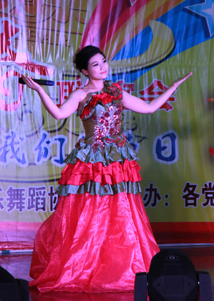 “60后”、“70后”们不甘示弱,今天也粉墨登场了!看,包装支部的小合唱《革命人永远是年轻》,车间主任、老班长们在台上放歌抒怀。管理支部选送的节目里,平常埋头工作的库管员、土建技术员、会计、生产调度员们在舞台上串烧歌曲。科研支部的歌曲联唱节目中,“博士哥”丁军、取样工杨鲲着实秀了一把歌喉。工贸公司的朱丽萍来自黄梅故乡安庆,她和搭档为观众们献上了一段黄梅戏经典唱段《十五的月亮为谁圆》。营销公司三句半节目《六国赞》,销售员们敲打小锣小鼓赞六国、夸营销,在诙谐幽默中鼓舞人心,传递正能量。