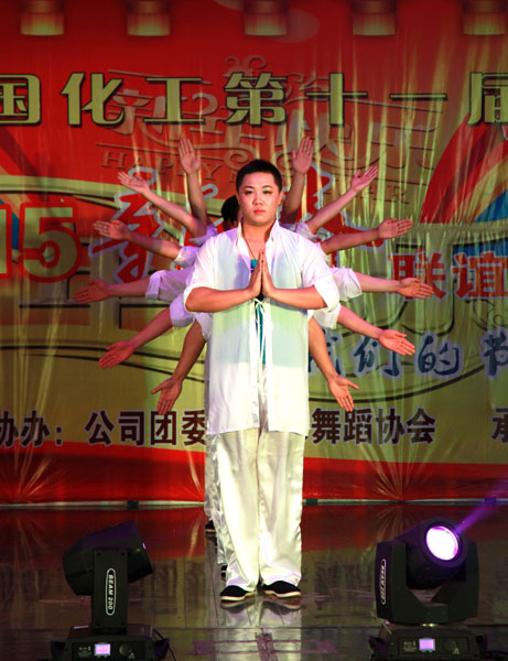 六国人自己的“春晚”,“80后”、“90后”们想法设法出奇出新。瞧,磷酸车间的舞蹈《千手观音》,是由八位大小伙子利用工余时间自编自导自演,反串、有些许无厘头的幽默搞笑效果十分调动现场气氛。再看该公司音乐舞蹈协会选送的现代舞,是堪称年度最火神曲《狐狸叫》。还有国星化工选送的舞蹈《康定情歌》,藏族服饰装扮的姑娘小伙们青春洋溢、热情奔放。“我们的时光,是六国的时光。”氮肥厂技术员李成、丁申龙等的原创歌曲《六国时光》,小伙子们怀抱吉他、麦克风自弹自唱。政工支部的郑国宁、吴昊自创自演,为大伙带来了相声《想唱就唱》,二位形象兼具高矮胖瘦的喜感效果,演出中,二位捧哏逗哏配合天衣无缝、笑料百出,不时引发哄堂大笑。此前,二位还将这个相声节目,搬上了铜陵市青年企业家年会的舞台吶!