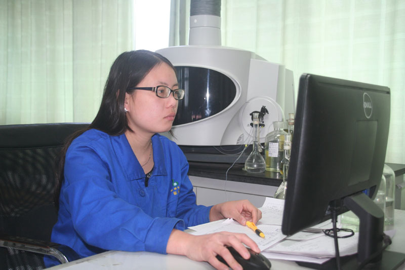 六国公司检验中心仪器分析班员工正在用电感耦合等离子原子发射光谱仪,检测55%磷酸一铵出口产品中的有效磷含量。