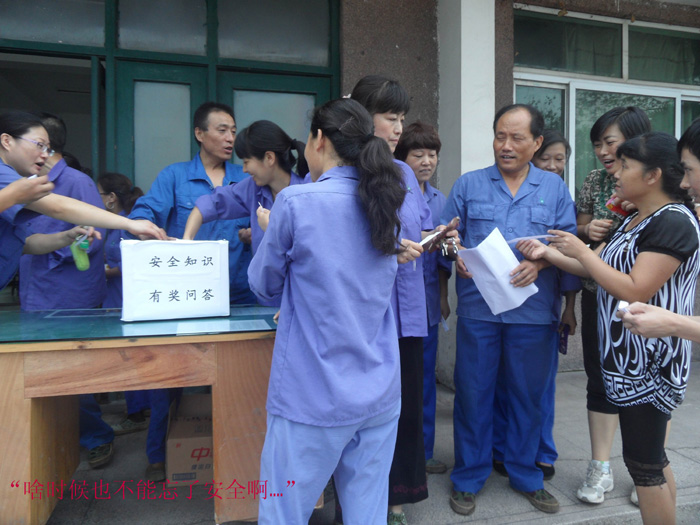 为提高员工安全意识,日前,六国化工公司供水车间开展安全知识有奖竞答活动,围绕公司安全生产方针、安全生产“三懂四会”、防火、灭火原理及方法等生产安全知识命题,以抽题回答、答对有奖为形式,吸引车间员工踊跃参加,收到良好效果。