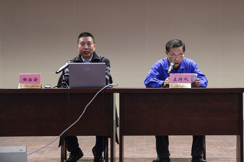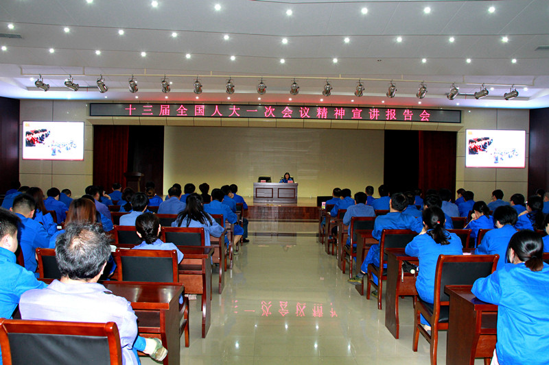 图1、举办十三届全国人大一次会议精神宣讲报告会,邀请第十三届全国人大代表、“技能大师工作室”、“劳模创新工作室”领衔人、六国公司氮肥厂质计部副部长丁宏锁同志进行主题宣讲。