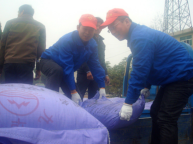 1月20日上午,铜化青年志愿者来到铜陵县钟鸣镇,开展送农资下乡活动,为该镇金山村、清泉村赠送“六国”牌复合肥和“九华山”牌过磷酸钙共计三吨,并将农化服务手册送到农民朋友的手中,指导用户科学施肥。