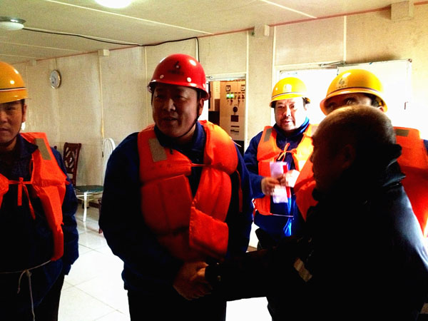 春节前,六国化工公司供应二公司采购的复合肥原料氯化钾、氯化铵等集中到货。由于春节假期码头工人放假等原因,部分外来水运原材料船只滞卸,船上工作人员在铜陵过春节。2月8日上午,六国公司党委书记、总经理方劲松和供应系统负责人,乘坐快艇奔赴各滞港船只,上船慰问并送去红包,感谢供应客户、运输单位对公司的支持。各滞港船只工作人员感到意外、激动,对船只滞港表示理解。
