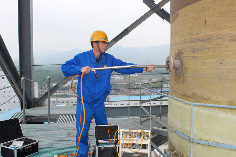 环境监测人员对车间尾气进行监测