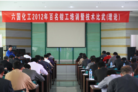 2012年5月16日,一百余名员工在公司举行了,六国化工2012年百名钳工培训暨技术比武(理论),现场竞赛氛围热情而激烈,体现了当代技术工人的新面貌